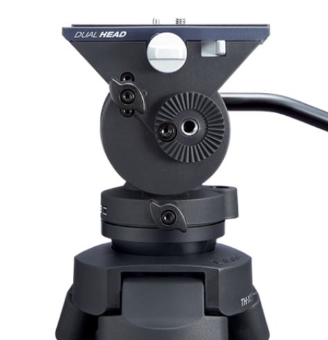 - Diseño de doble cabezal para trípodes de tazón de 65mm y equipos de base plana con tornillos de 3/8″-16