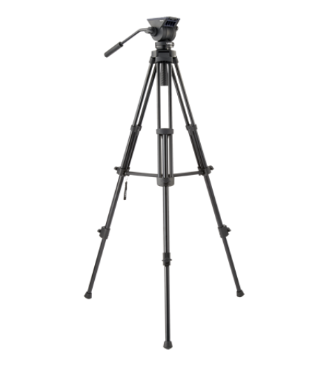 Trípode con altura de 75.5cm a 159cm y cabezal-doble.