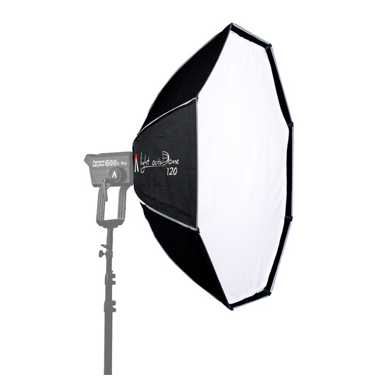 El softbox octogonal Light OctaDome 120 con montura Bowens de Aputure cuenta con ocho lados que transforman cualquier luminaria de fuente puntual con montura Bowens en una luz de área ultra suave, que cubre al sujeto o escenario con una luz difusa. Tiene un gran diámetro de 120 cm y dos difusores frontales, además de un deflector interior que permite ajustar con precisión la intensidad y la calidad de la luz.