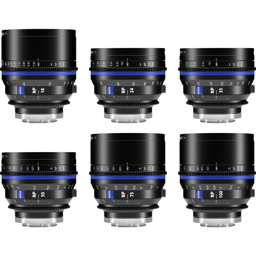 El set Zeiss Nano Prime de 6 lentes brinda una solución completa para producción de cine y video, cubriendo desde ángulos amplios hasta teleobjetivos.